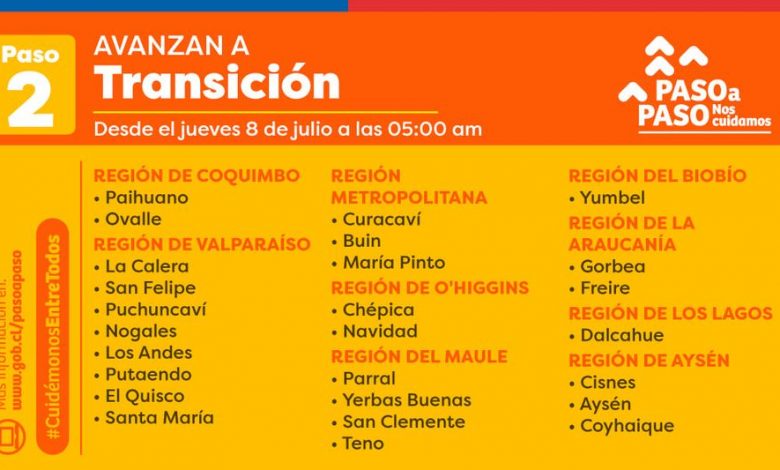 A partir del jueves 8 de julio a las 5:00 horas, las siguientes comunas avanzan a #Transición.