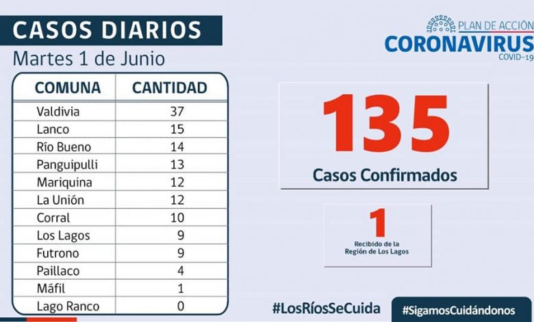 📌REPORTE – ] El SEREMI de Salud, Keith Hood, informó que hoy se reportaron 136 nuevos casos de COVID-19 en Los Ríos.
