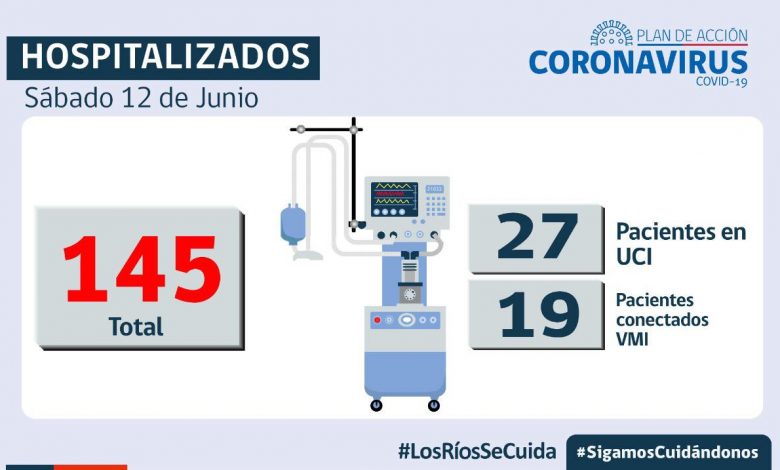A la fecha en Los Ríos hay 1.482 casos activos y 145 personas hospitalizadas, de las cuales 19 están conectadas a ventilación mecánica 🚑