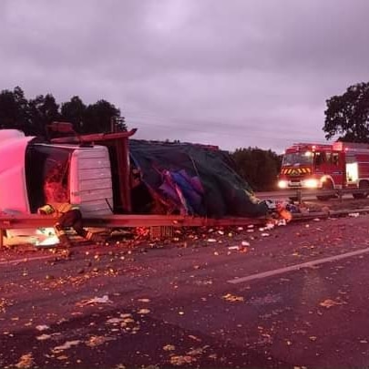 En Pautalosrios.cl Valdivia: Policial Volcamiento de camión con dos lesionados.