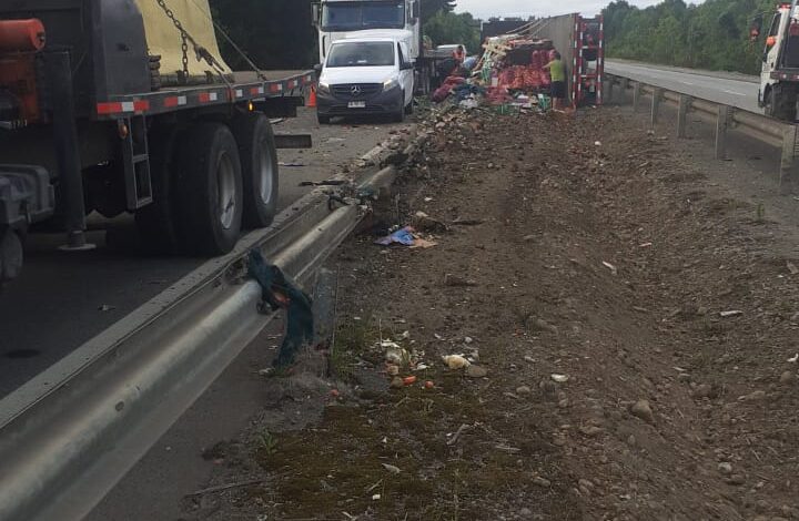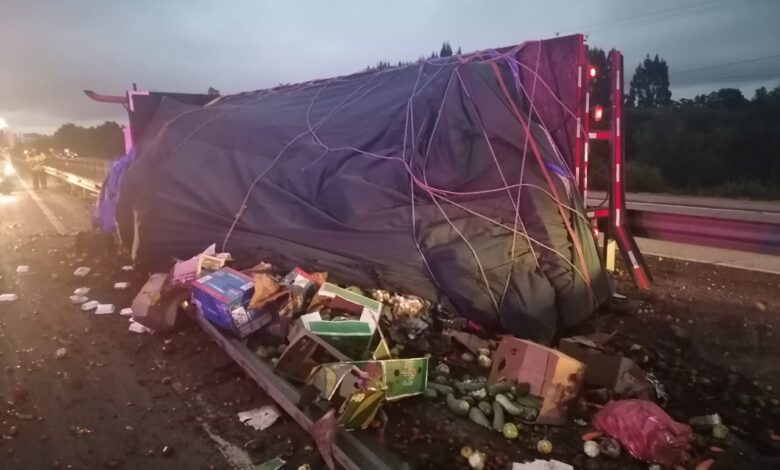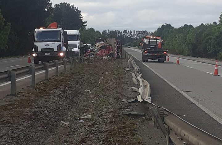 🔴En Pautalosrios.cl Valdivia: Policial Volcamiento de camión con dos lesionados.