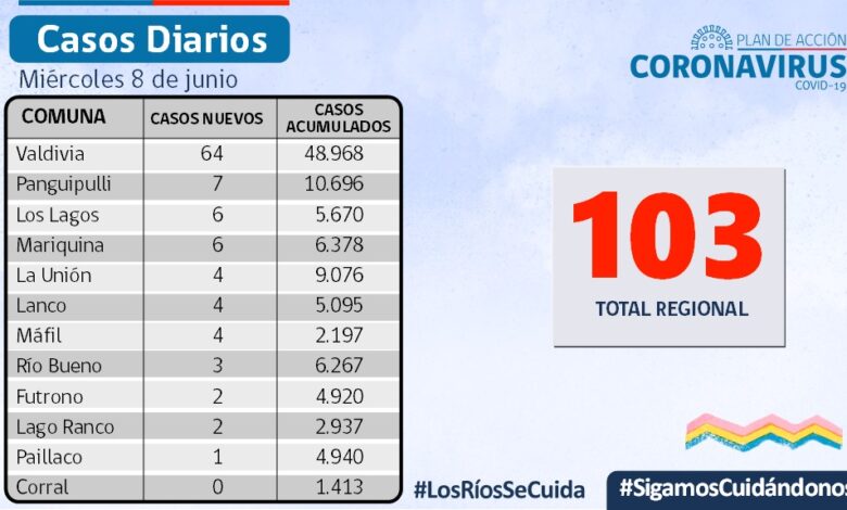 REPORTE] El SEREMI de Salud, Dr.José Llambías, informó que hoy se reportaron 103 nuevos casos de COVID-19 en Los Ríos.