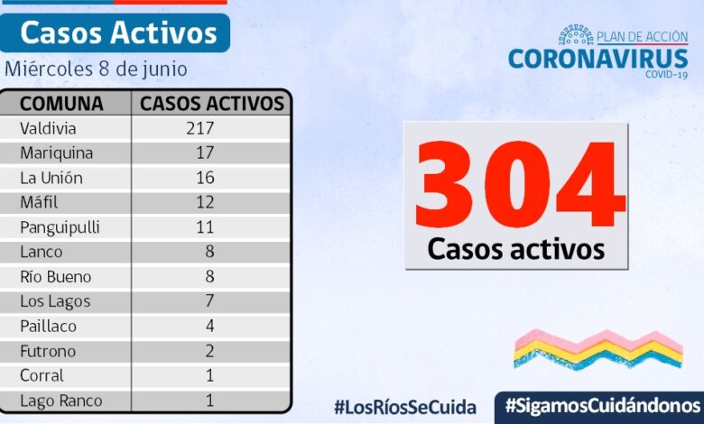 A la fecha, hay 304 casos activos, de los cuales 217 corresponden a la comuna de Valdivia. y 17 a la comuna de Mariquina.