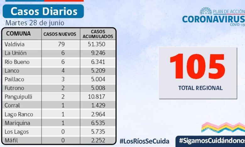 REPORTE] El SEREMI de Salud, Dr.José Llambías, informó que hoy se reportaron 105 nuevos casos de COVID-19 en Los Ríos 😷🦠