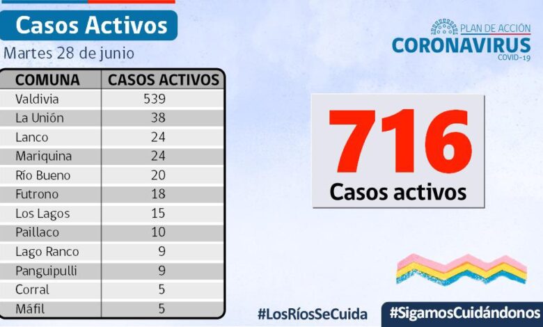 A la fecha, hay 716 casos activos, de los cuales 539 corresponden a la comuna de #Valdiviacl y 38 a la comuna de #LaUnioncl