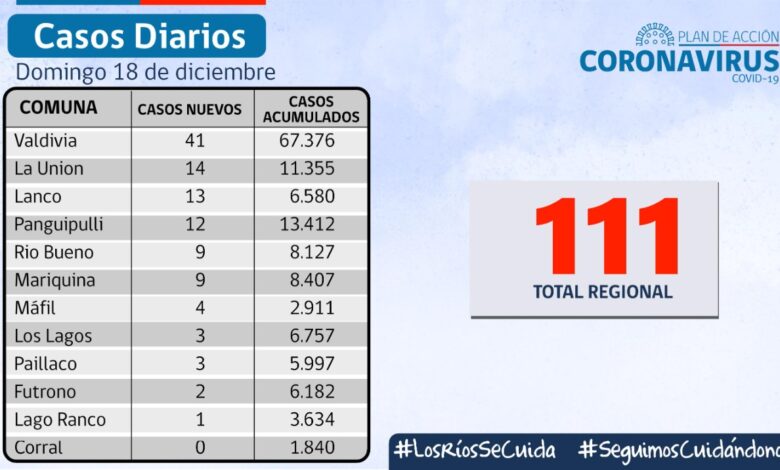 111 contagios nuevos informa hoy la autoridad sanitaria de los Ríos.