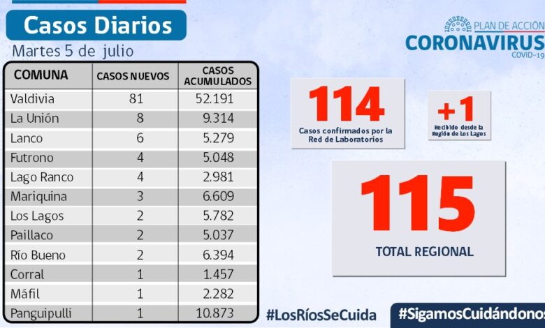 REPORTE] El SEREMI de Salud, Dr.José Llambías, informó que hoy se reportaron 115 nuevos casos de COVID-19 en Los Ríos.