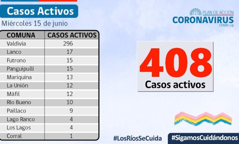 A la fecha, hay 408 casos activos, de los cuales 296 corresponden a la comuna de Valdivia y 17 a la comuna de Lanco.