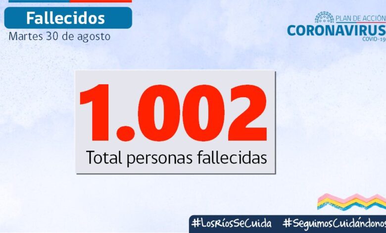 Durante esta jornada, se informa el lamentable fallecimiento de 4 personas por causas asociadas al Covid-19. Se trata de una mujer de 77 años de la comuna de La Unión; un hombre de 69 años de la comuna de Lago Ranco; una mujer de 93 años de la comuna de Paillaco y una mujer de 79 años de la comuna de Valdivia.