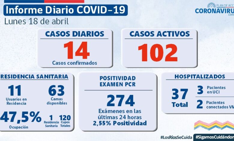 14 nuevos casos se reportan hoy para los Ríos a la fecha hay 102 casos activos