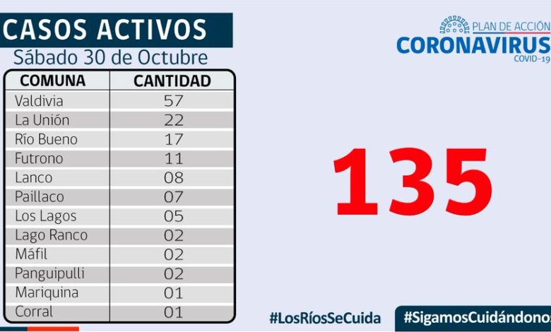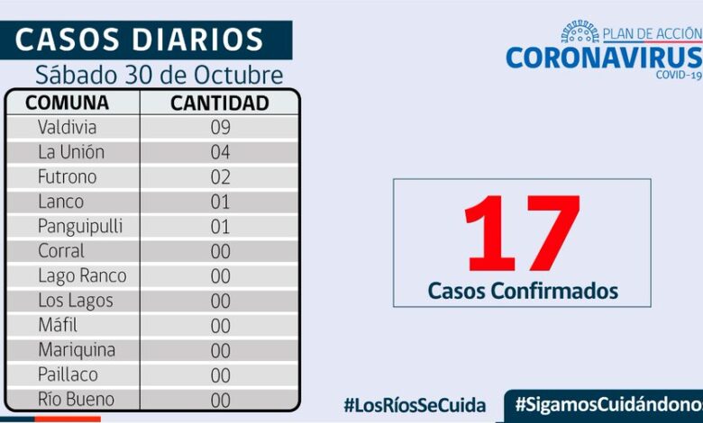 17 casos nuevos de Covid-19 , 35 casos activos, de los cuales 57 corresponden a la comuna de Valdivia.
