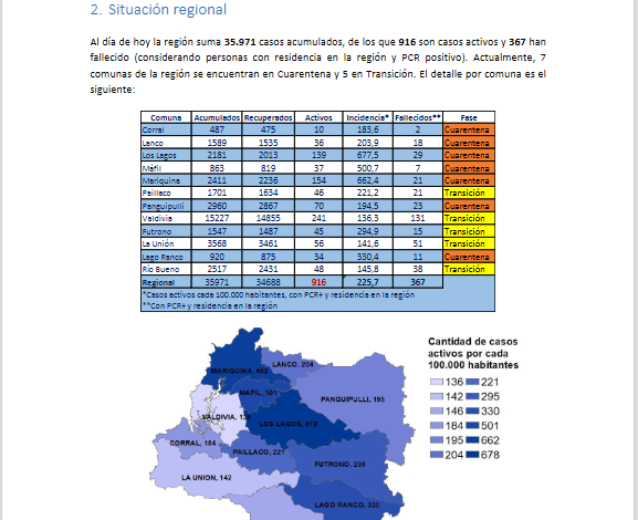 Los Lagos , Mariquina y Valdivia lideran casos nuevos en los Rios.