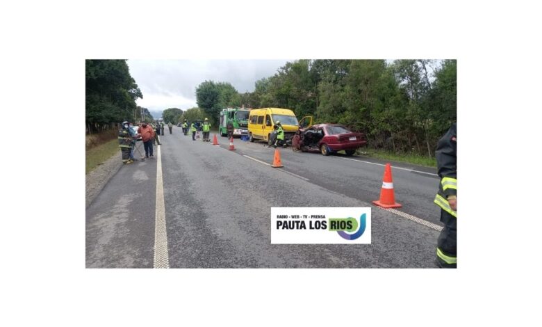 Carabineros trabaja en el lugar, una pista de circulación interrumpida en el Km 4,9 de la Ruta Ch-203 por colisión frontal entre un automóvil y un furgón que dejó a los 2 conductores fallecidos. Carabineros de la SIAT Valdivia investiga.