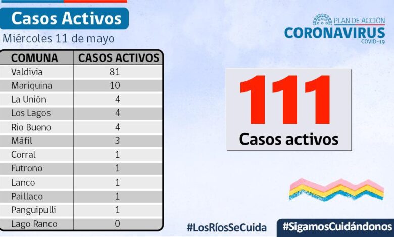 A la fecha, hay 111 casos activos, de los cuales 81 corresponden a la comuna de Valdivia y 10 a la comuna de Mariquina.