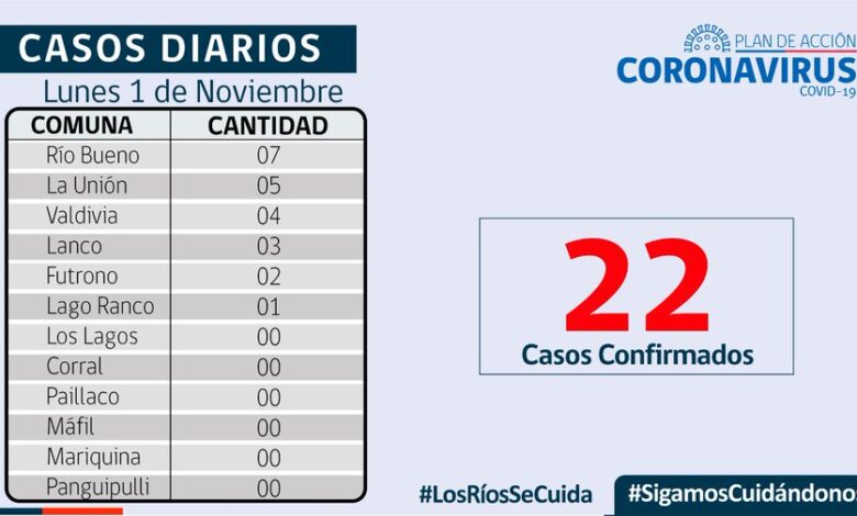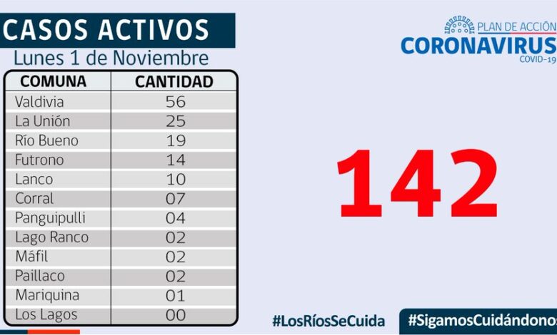 22 casos nuevos de Covid-19, hay 142 casos activos, de los cuales 56 corresponden a la comuna de Valdivia.
