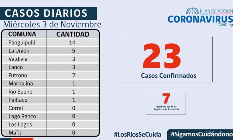 23 casos nuevos confirmados de Covid-19, 7 provenían de la región de La Araucanía.