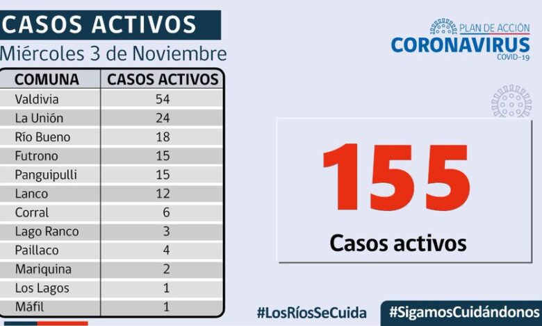 A la fecha en Los Ríos hay 155 casos activos, de los cuales 54 corresponden a la comuna de Valdivia