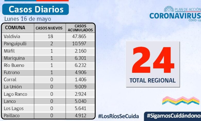 24 casos nuevos se informan hoy en los Ríos , solo Paillaco no tiene casos activos