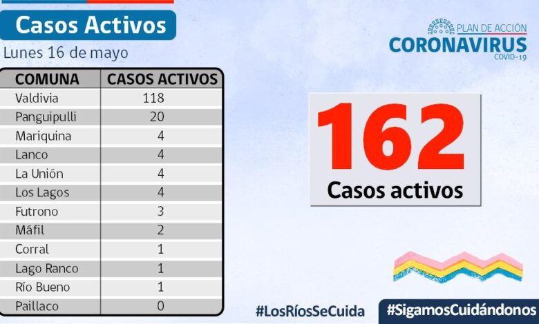 A la fecha, hay 162 casos activos, de los cuales 118 corresponden a la comuna de Valdivia y 20 a la comuna de Panguipulli.