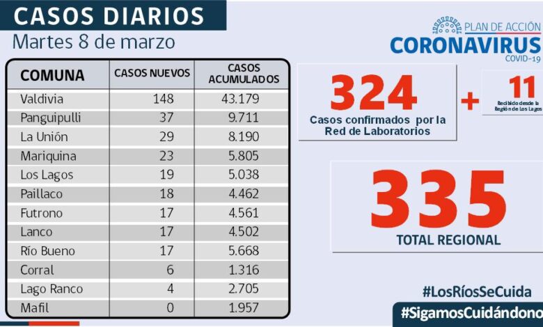 REPORTE] El SEREMI de Salud (S), Leonardo Bórquez, informó que hoy se reportaron 335 nuevos casos de COVID-19 en Los Ríos.