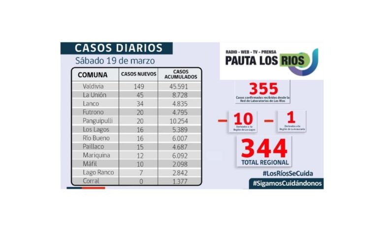 Hoy se informan 344 nuevos casos de COVID-19 en Los Ríos.