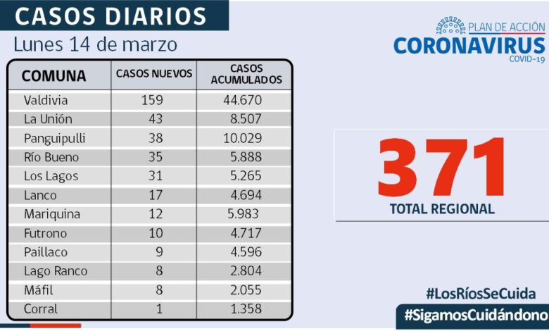 REPORTE] El SEREMI de Salud (S), Leonardo Bórquez, informó que hoy se reportaron 371 nuevos casos de COVID-19 en Los Ríos.