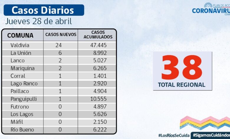REPORTE] El SEREMI de Salud, Dr.José Llambías, informó que hoy se reportaron 38 nuevos casos de COVID-19 en Los Ríos.