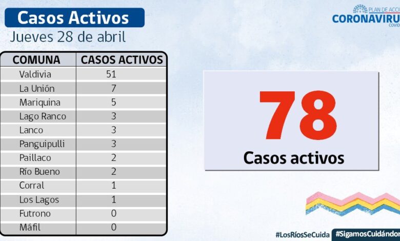 A la fecha, hay 78 casos activos, de los cuales 51 corresponden a la comuna de Valdivia y 7 a la comuna de La Unión.