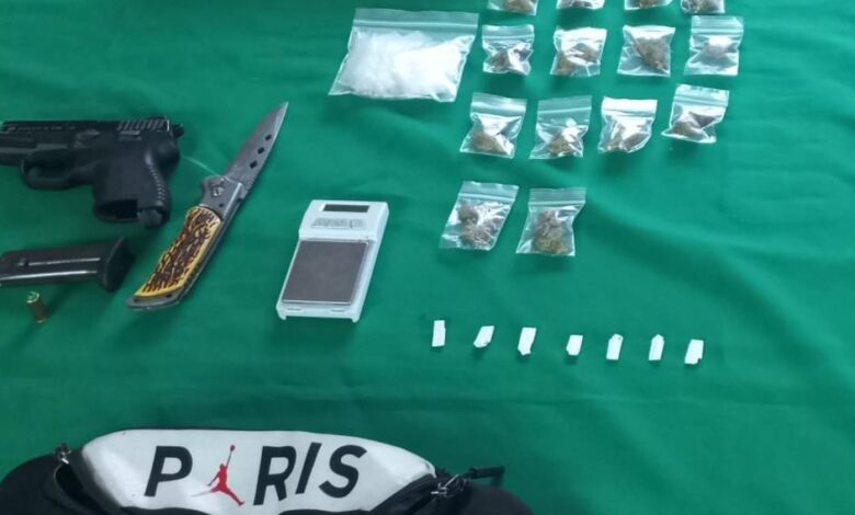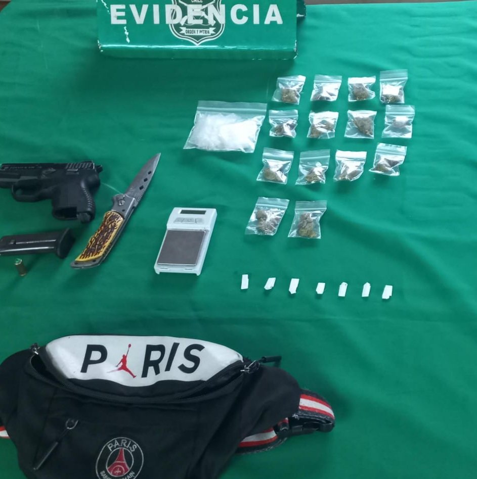 BREVES POLICIAL VALDIVIA : Tras denuncia por amenazas al interior de taller mecánico de salida sur,Carabineros de Subcom Oscar Cristi detuvo a 4,con antecedentes por tráfico drogas, que se movilizaban en portando 1 armamento,1 munición,dosis de cocaína,marihuana,, 1 pesa digital y 2 .