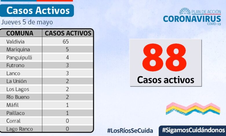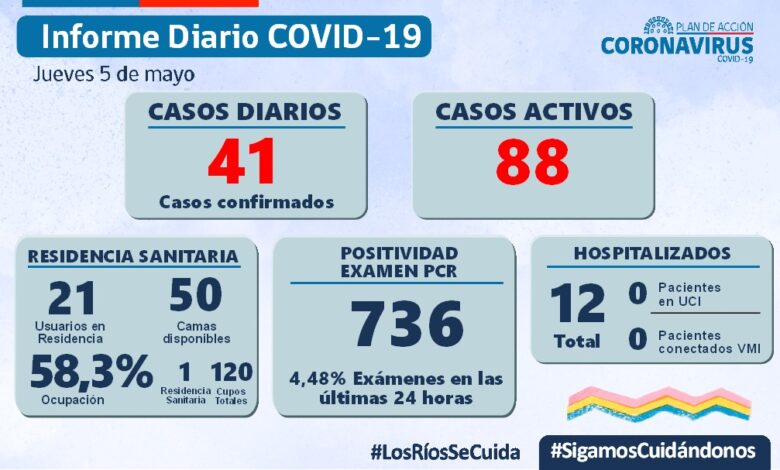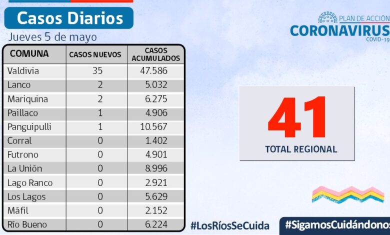 41 nuevos casos se reportan hoy para los Ríos, solo dos comunas no registran casos activos