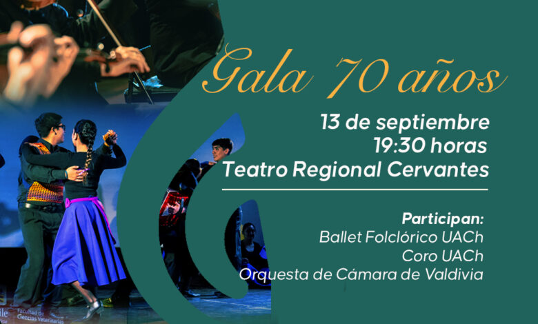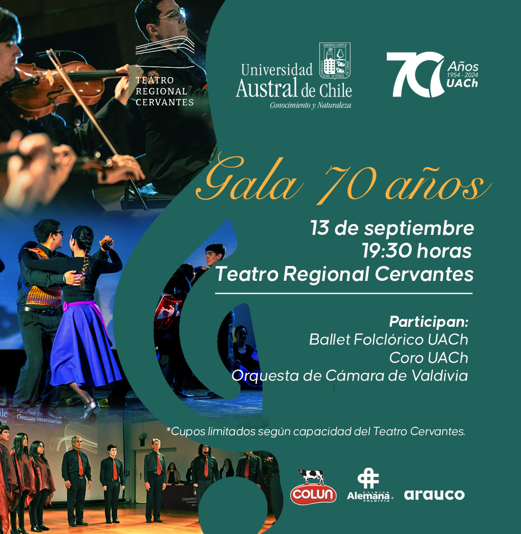 En el marco de la conmemoración del 70° Aniversario de la Universidad Austral de Chile se realizará esta gala el viernes 13 de septiembre a las 19.30 hrs. en el Teatro Regional Cervantes de Valdivia.