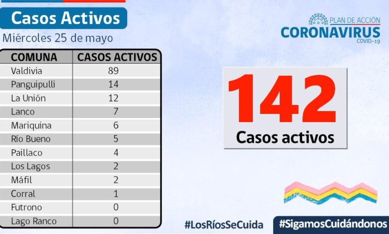 A la fecha, hay 142 casos activos, de los cuales 89 corresponden a la comuna de Valdivia y 14 a la comuna de Panguipulli.