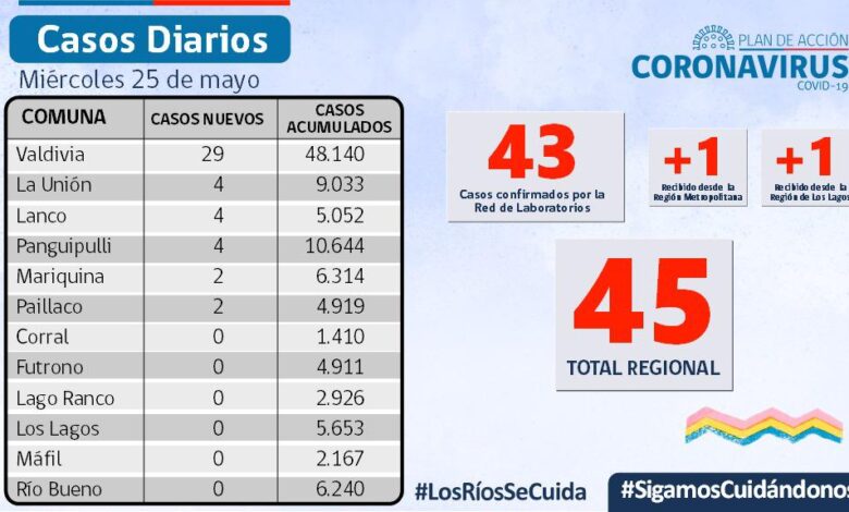 REPORTE] El SEREMI de Salud, Dr.José Llambías, informó que hoy se reportaron 45 nuevos casos de COVID-19 en Los Ríos.