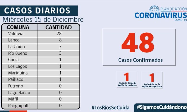 48 casos confirmados un caso desde la Región de los Lagos y otro recibido desde la Región Metropolitana.