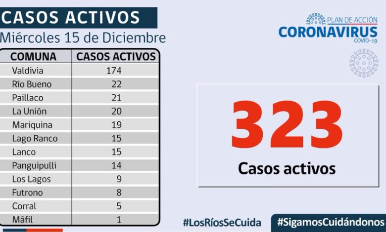 El SEREMI de Salud(S), Leonardo Bórquez, informó que hoy se reportaron 50 nuevos casos de COVID-19 en Los Ríos,a la fecha en Los Ríos hay 323 casos activos, de los cuales 174 corresponden a la comuna de Valdivia y 22 a la comuna de Río Bueno , hoy, en la Red Integrada de Los Ríos se mantienen 40 personas hospitalizadas, 7 de ellas, conectadas a un ventilador mecánico.Durante esta jornada se informó el procesamiento de 903 exámenes, con una positividad de 2,4% .En Residencias Sanitarias se mantienen 80 usuarios, lo que representa un 75% de ocupación de camas.