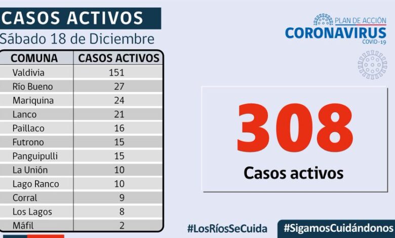 55 casos confirmados de Covid-19, en los Ríos hay 308 casos activos, de los cuales 151 corresponden a la comuna de Valdivia