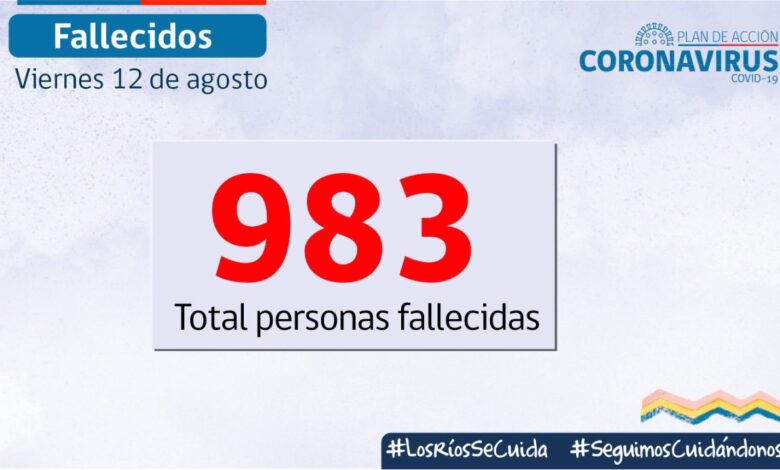 Durante esta jornada, se confirma el fallecimiento de dos personas por causas asociadas al Covid-19. Se trata de una mujer de 76 años de la comuna de Lanco y de una mujer de 60 años de la comuna de Valdivia.