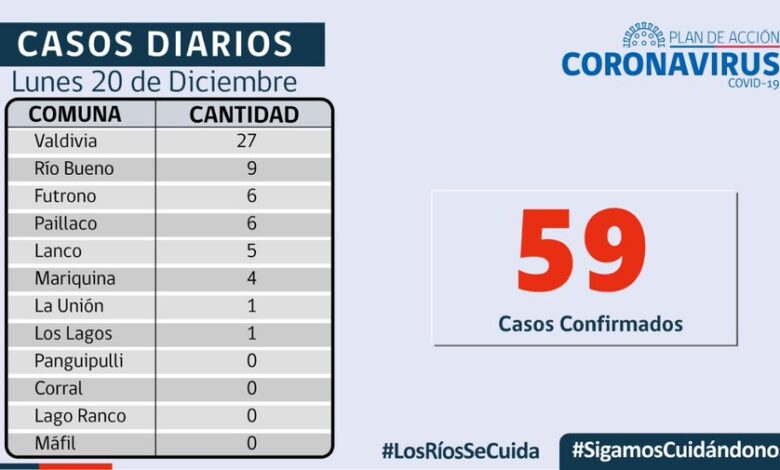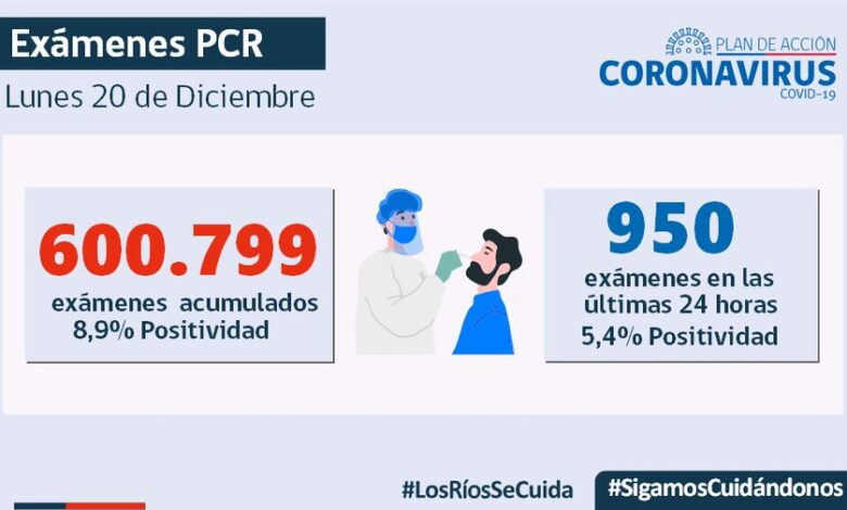 59 contagios confirmados en los Ríos, 950 exámenes procesados positividad de un 5,4%