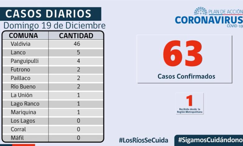 63 casos nuevos de Covid-19, una persona fallecida en Mariquina en el informe de hoy .