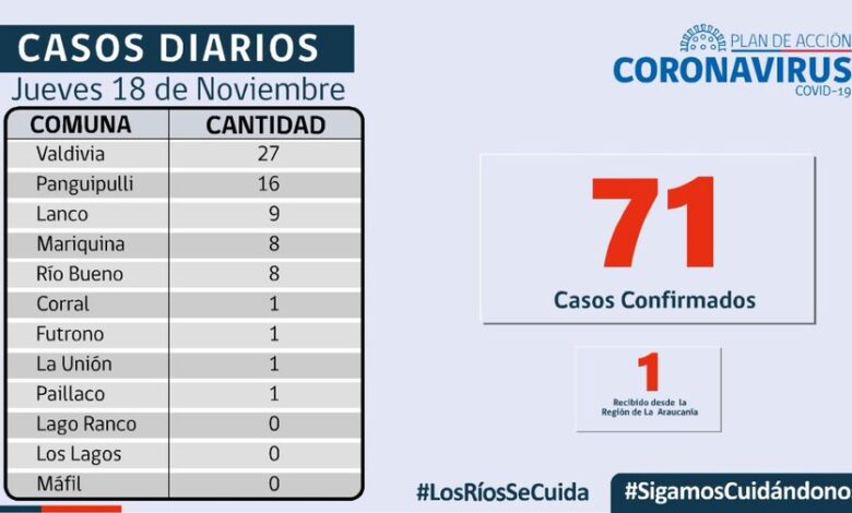 Con 342 casos Valdivia lidera los contagios por Covid-19.