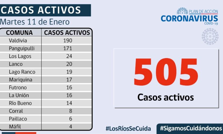 A la fecha, hay 505 casos activos, de los cuales 190 corresponden a la comuna de #Valdiviacl y 171 a la comuna de Panguipulli.