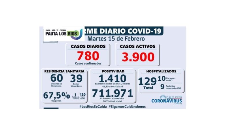780 casos confirmados en los Ríos, 10 pacientes en la UCI