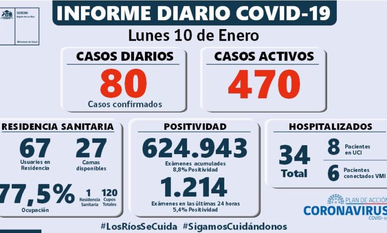 80 casos confirmados diarios en los Rios , 470 activos .