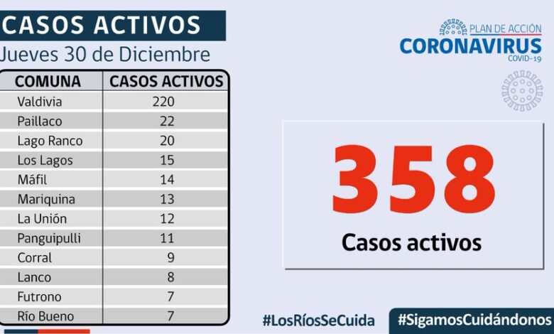 A la fecha en Los Ríos hay 358 casos activos, de los cuales 220 corresponden a la comuna de Valdivia