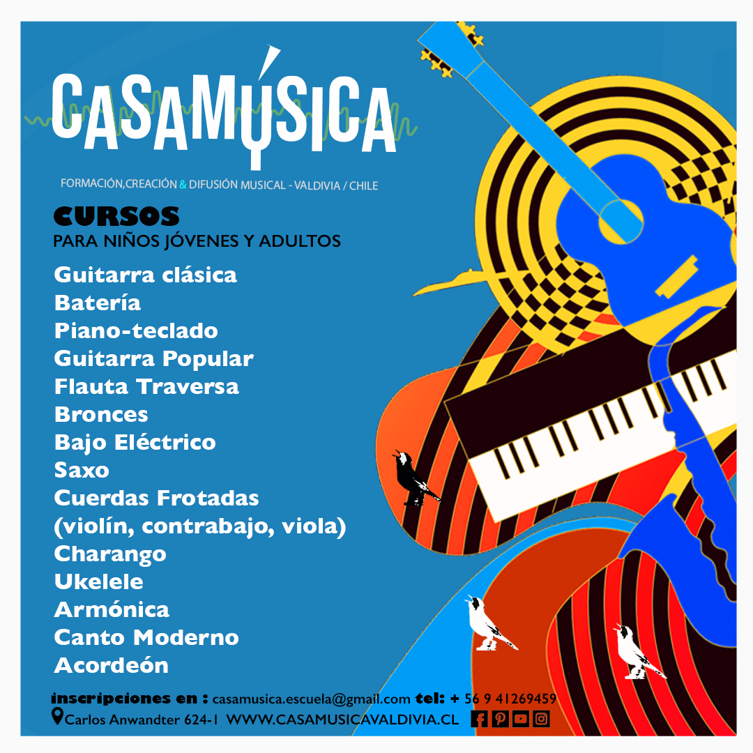 Si te interesa aprender a tocar algún instrumento o perfeccionar tu canto de manera personal o grupal, pueden contactarse al correo: casamusica.escuela@gmail.com o por la aplicación de Whatsapp +56 9 41269459.