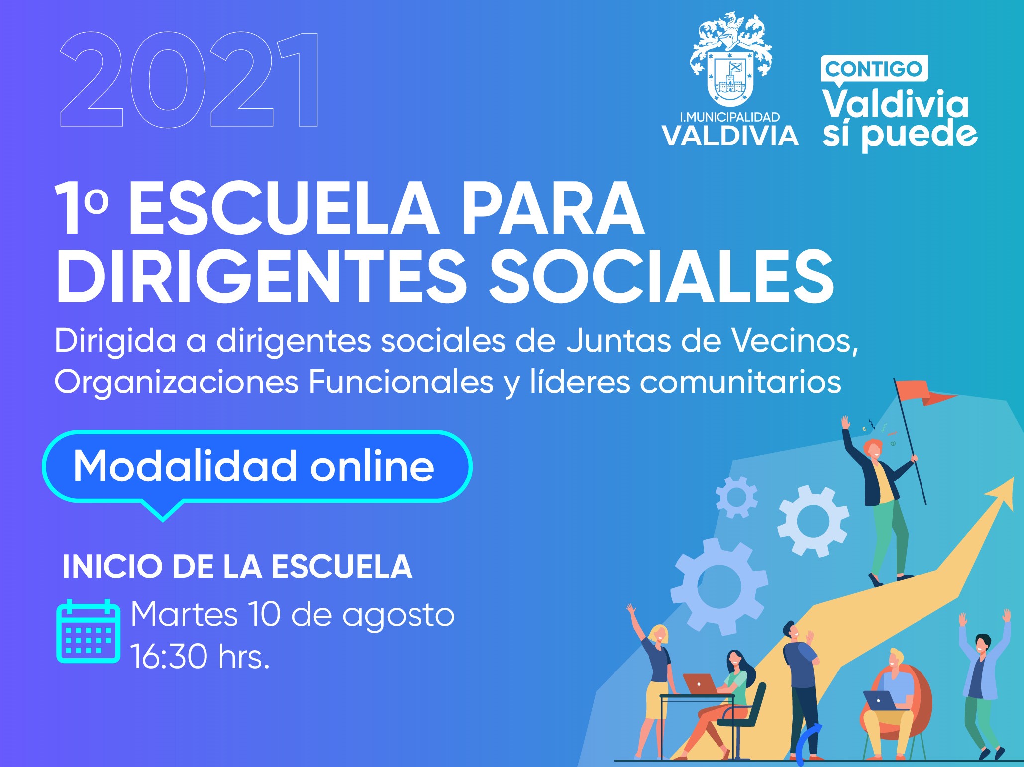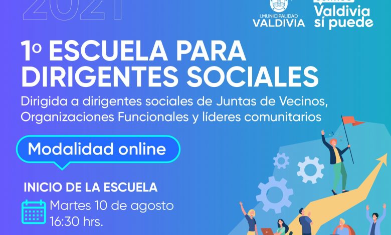 La Escuela de Dirigentes Sociales se realizará los días martes de 16.30 a 18.00 horas, y quienes deseen participar podrán inscribirse hasta el 6 de agosto a través del siguiente link https://bit.ly/3wX3hDR