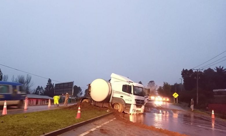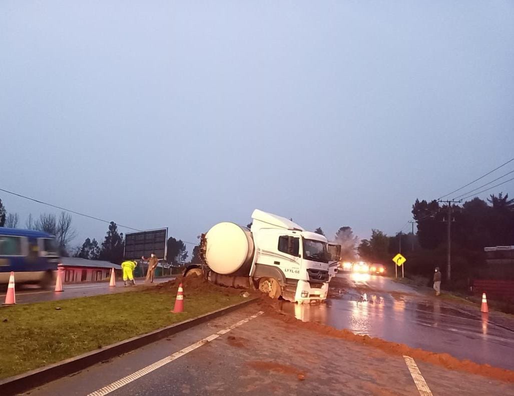 Accidente de esta madrugada en la ruta Mariquina-Valdivia provocó derrame de melaza frente a Villa Cayumapu.