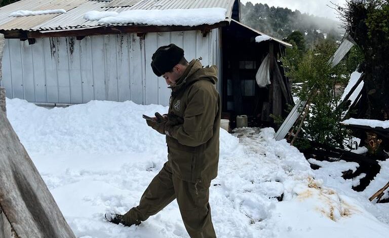Carabineros de la 5ªComisaría Panguipulli se trasladaron al sector cordillerano de Chepica Alto para conocer estado de adulta mayor, quien ante riego de nevazones se negó a ser trasladada a domicilio seguro,gestionando compañía de familiar y ayuda del Dpto Social de @MuniPangui.