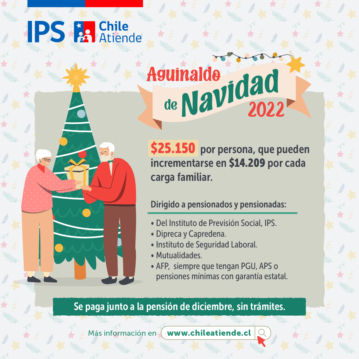 El beneficio se paga a quienes al 30 de noviembre de 2022 tengan la calidad de pensionadas y pensionados del Instituto de Previsión Social (IPS), Dipreca y Capredena, del Instituto de Seguridad Laboral y de las Mutualidades de Empleadores de la Ley de Accidentes del Trabajo (Ley N° 16.744). También tienen derecho los pensionados del Sistema de AFP, siempre que a esa fecha estén recibiendo el beneficio de Pensión Garantizada Universal (PGU), Aporte Previsional Solidario (APS) o pensiones mínimas con Garantía Estatal.