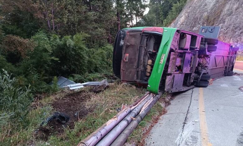 Ahora] Bus volcó en el sector de Liquiñe hay personas lesionadas de gravedad pero fuera de riesgo vital .